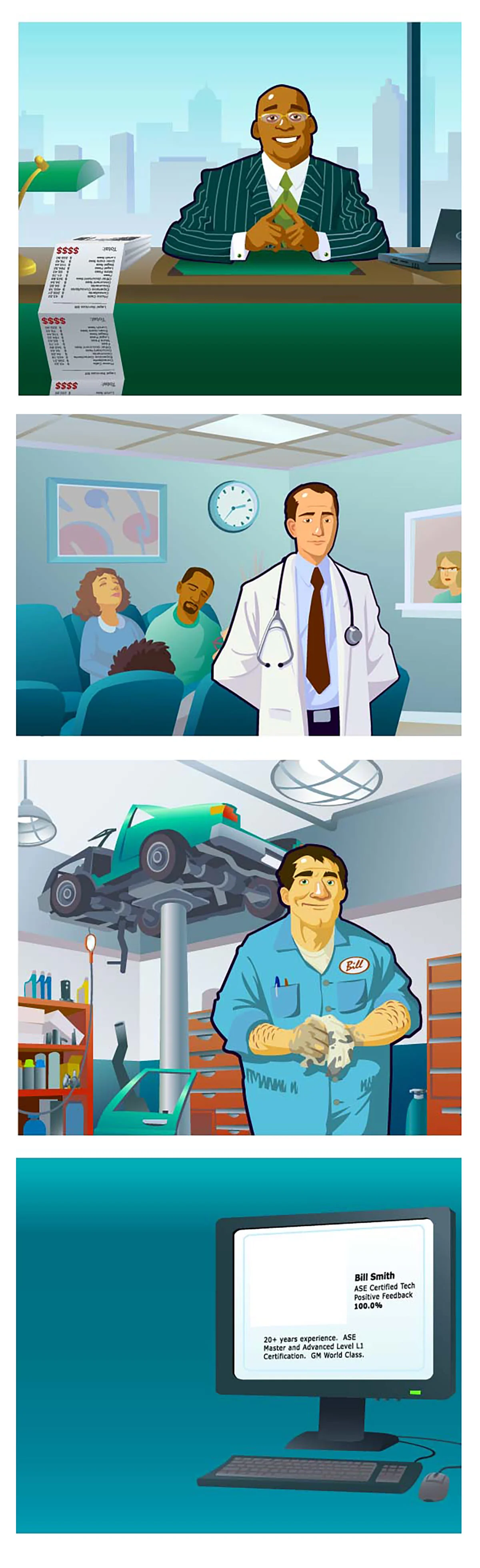 Vector illustration from a photo. This was made by manually adjusting gradients on each shape, no gradient meshes.